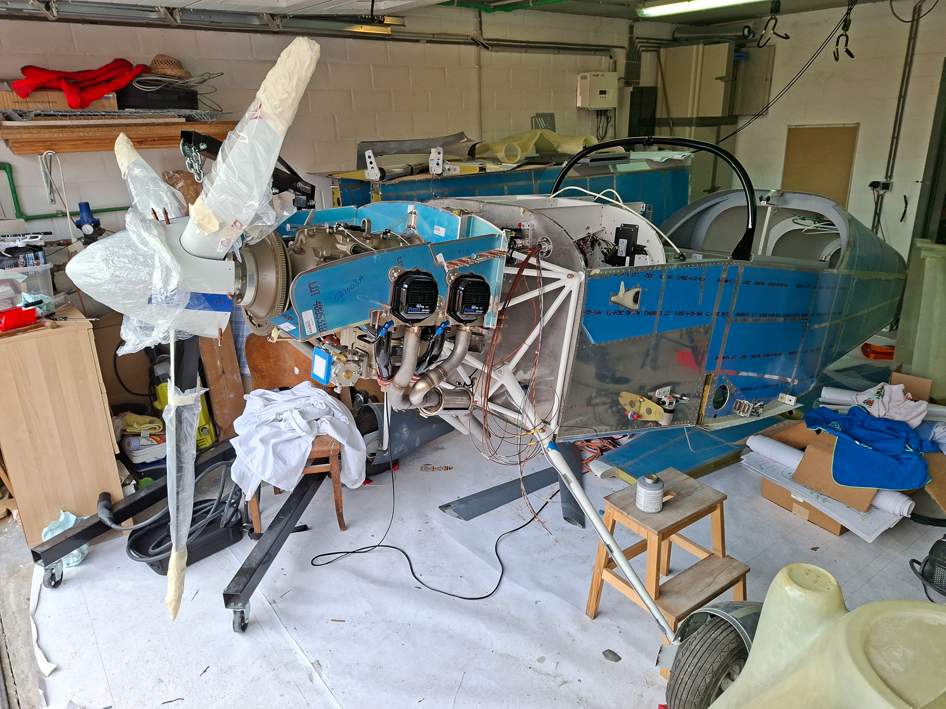 A big day again in my project. Nothing substantially done but I have hung the propellor on the engine prop hub for the first time. I kind of wanted an idea how everything would fit together and what is delivered by Catto with the propellor, spinner and saber extention.