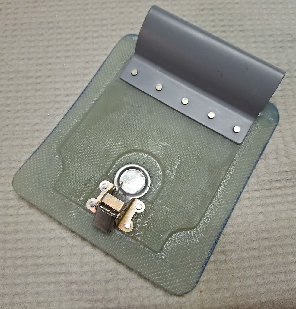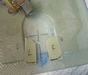 Then I made the 2 small extra epoxy strips which will go underneath the latch. Having these well sized is critical as the latch will bond onto them if they are too large.