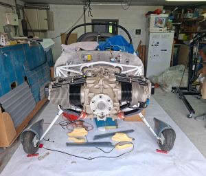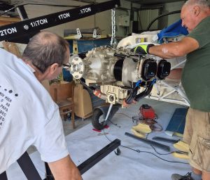 Using the engine hoist, we pulled it up, removed the pallet and moved it over to the front of the airplane. Alain helped me on this task to keep the engine in position. It's best having some extra hands around when you do this as the engine is heavy and the bolts are not always willing to go in as easy as you think it would.
