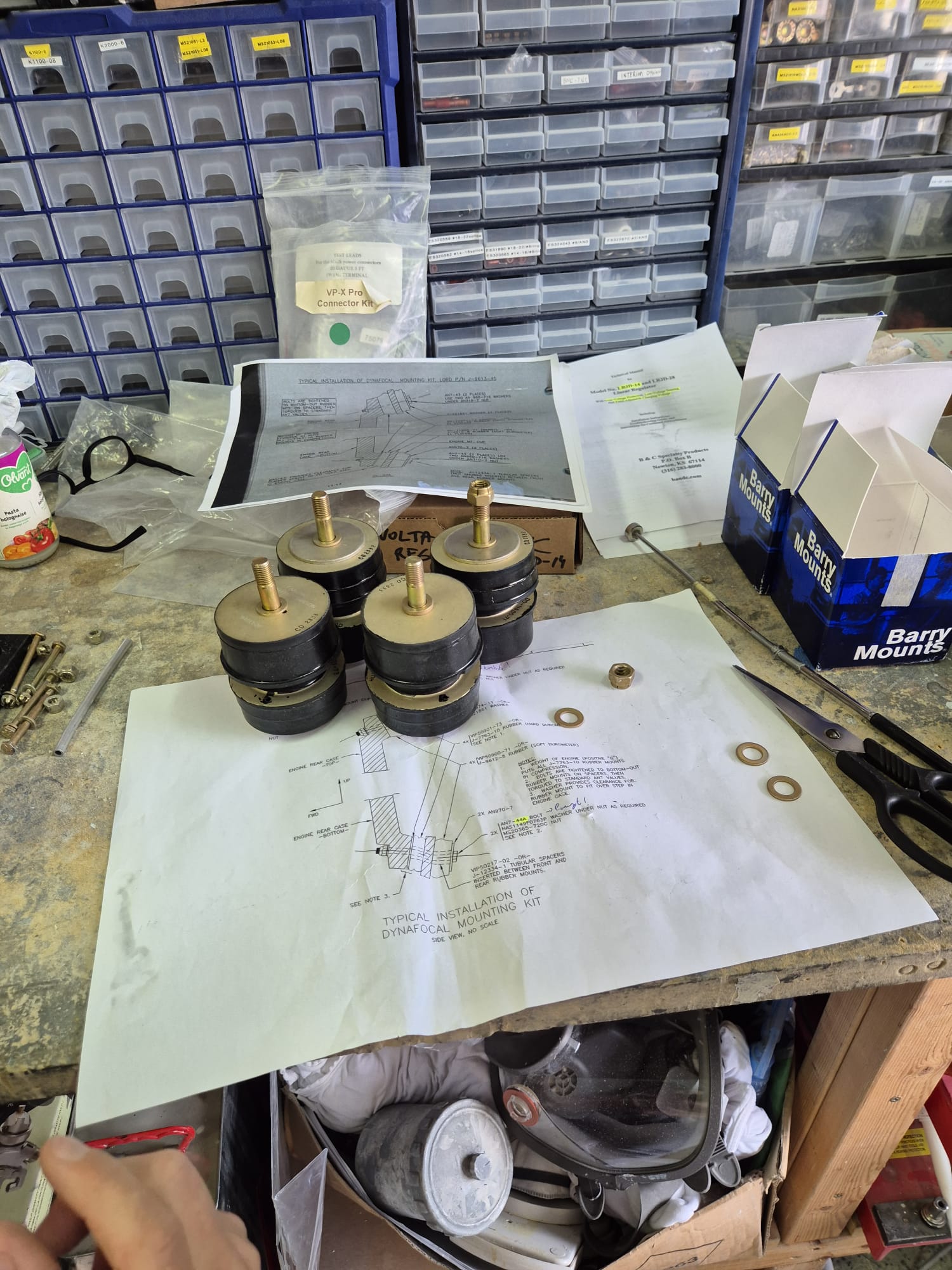 I found some documentation online from someone who did this before and described the process. I studied this carefully and upfront, had a close look at the barry mounts and dyna bolt set. You can read it following this link https://www.myrv14.com/buildlog/20150917/Engine_Hanging.pdf. Vans Aircraft also has some drawings available which are not part of the standard plan set that you receive with the kit.