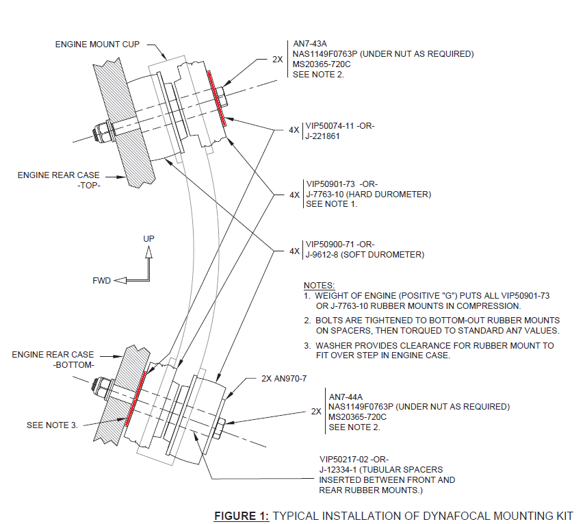 Start with the 2 top bolts. The first one is very easy... tighten the bolt but don't torque it yet, you'll probably have to loosen them again working on the bottom bolts. You do need to tighten the first so that the barry mounts compress allowing the other hole to come in line with the engine case. Remember this is a dynafocal mount, the bolts point inwards. If the bolt is not tightened enough on one side, it's impossible to insert the second one. As you tighten the bolts, the barry mounts compress and also position themselves in the engine mount. That's important.