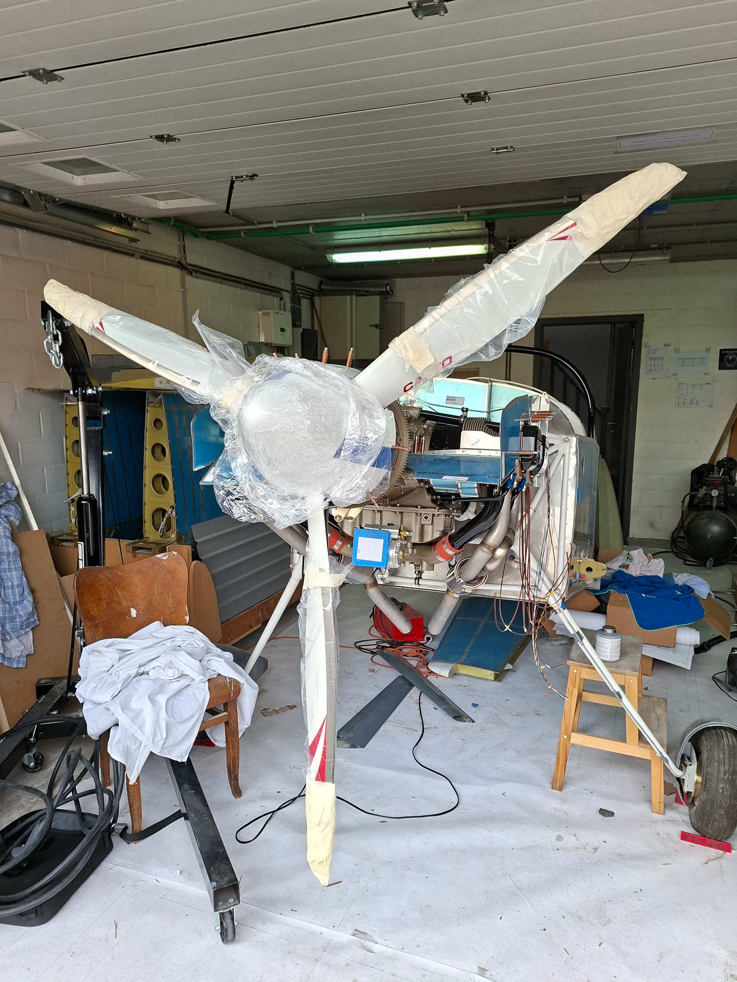 A big day again in my project. Nothing substantially done but I have hung the propellor on the engine prop hub for the first time. I kind of wanted an idea how everything would fit together and what is delivered by Catto with the propellor, spinner and saber extention.