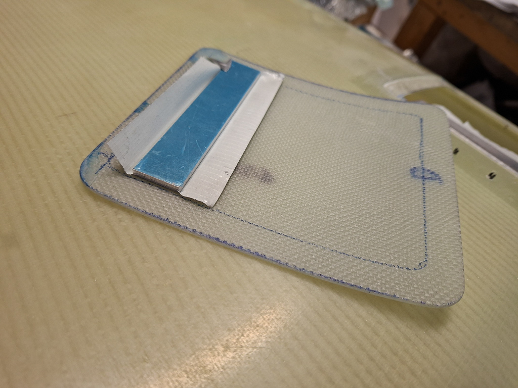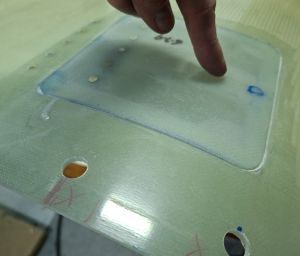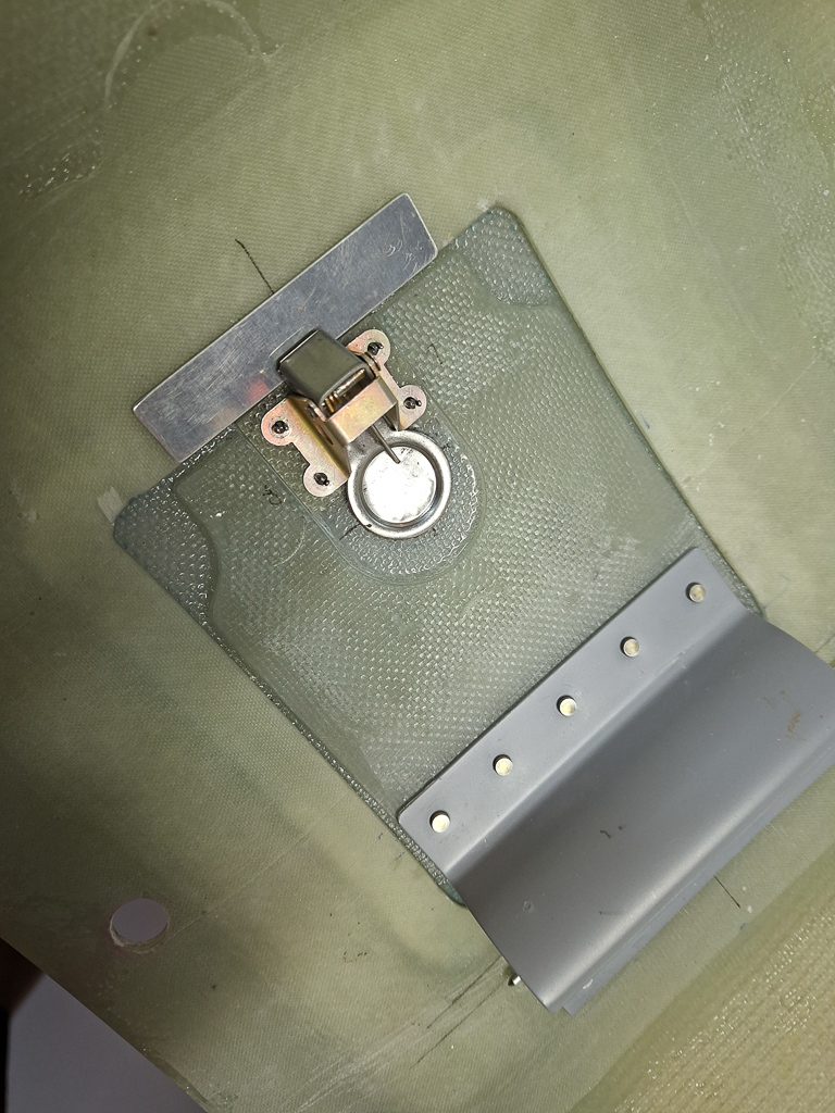 Then I made the 2 small extra epoxy strips which will go underneath the latch. Having these well sized is critical as the latch will bond onto them if they are too large.