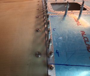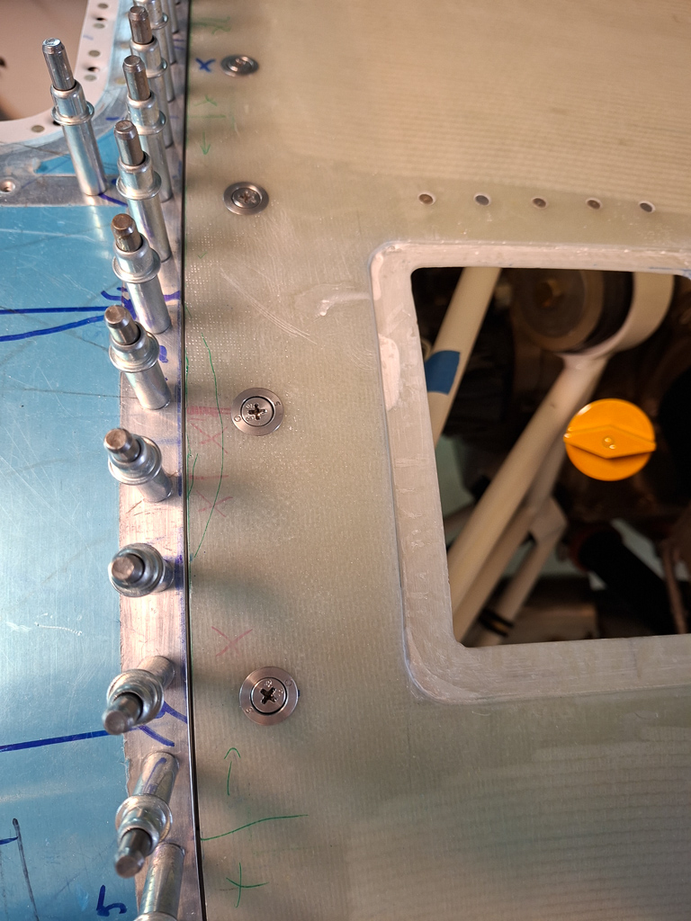 First take the hinge pin out and mark the rivet location for some AN426AD4 countersunk rivets holding the door to the top cowling. AD4 may be a bit of overkill here.