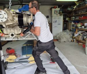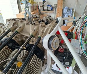 Using the engine hoist, we pulled it up, removed the pallet and moved it over to the front of the airplane. Alain helped me on this task to keep the engine in position. It's best having some extra hands around when you do this as the engine is heavy and the bolts are not always willing to go in as easy as you think it would.