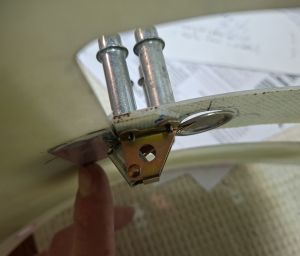 A simple trick here was to use a piece of epoxy scrap of the same thickness and make a 15/32 hole in it for the SkyBolt stud. Adjust it as you see it in this image with the stud nice and lever with the washer and remove the locking pin. Give it a half twist left or right and it locks in place.
