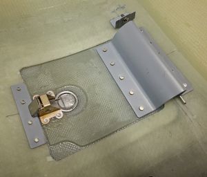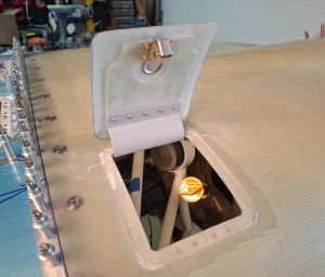 Latching of the oil door will be accomplished with a Cessna style latch KM610-64, also available at Aircraft Spruce. This will be the next step in the installation.